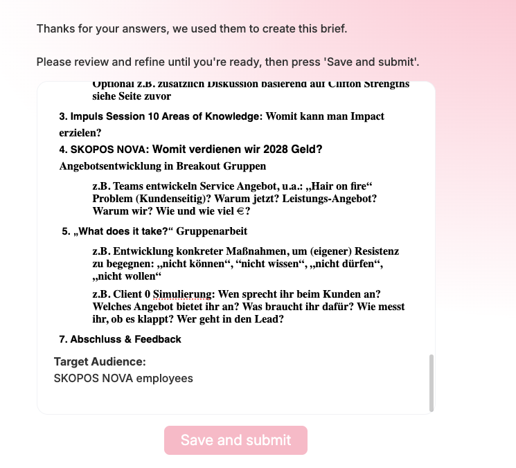 I cannot click on "save and submit, the button just wont react, after changing my strategic brief manually